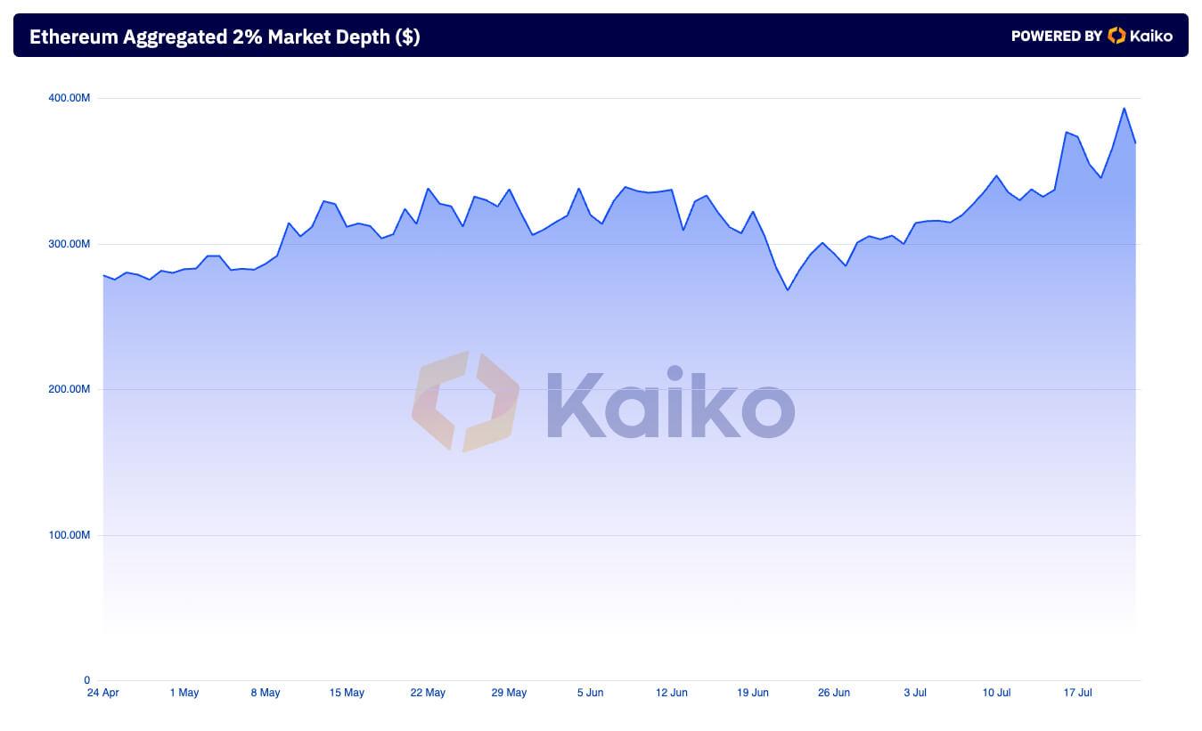 Ethereum order‑book liquidity has grown 41 % since April