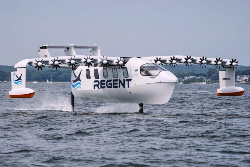 One of the biggest technical challenges in Regent’s design is the shift from foiling to flying. Hydrofoils are fast for a seafaring vessel, but far slower than the speeds needed to lift a conventional airplane from a runway.